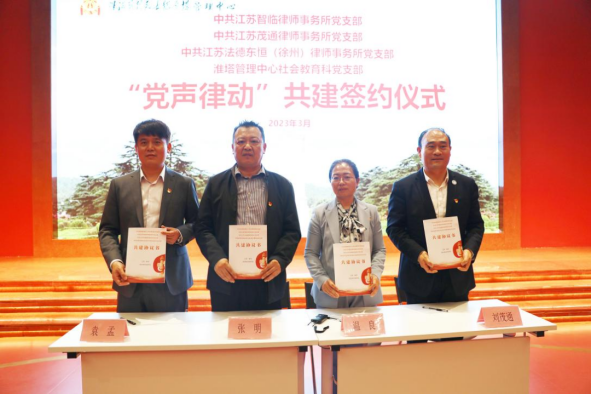 主动推进党建共建,发起成立淮海经济区律师党建联盟,联合多家律所党支部开展“党声律动”共建签约仪式,与徐州工业职业技术学院机关党总支第一党支部举办“弘扬法治精神 服务依法治校 助力学校高质量发展”党建结对共建活动。